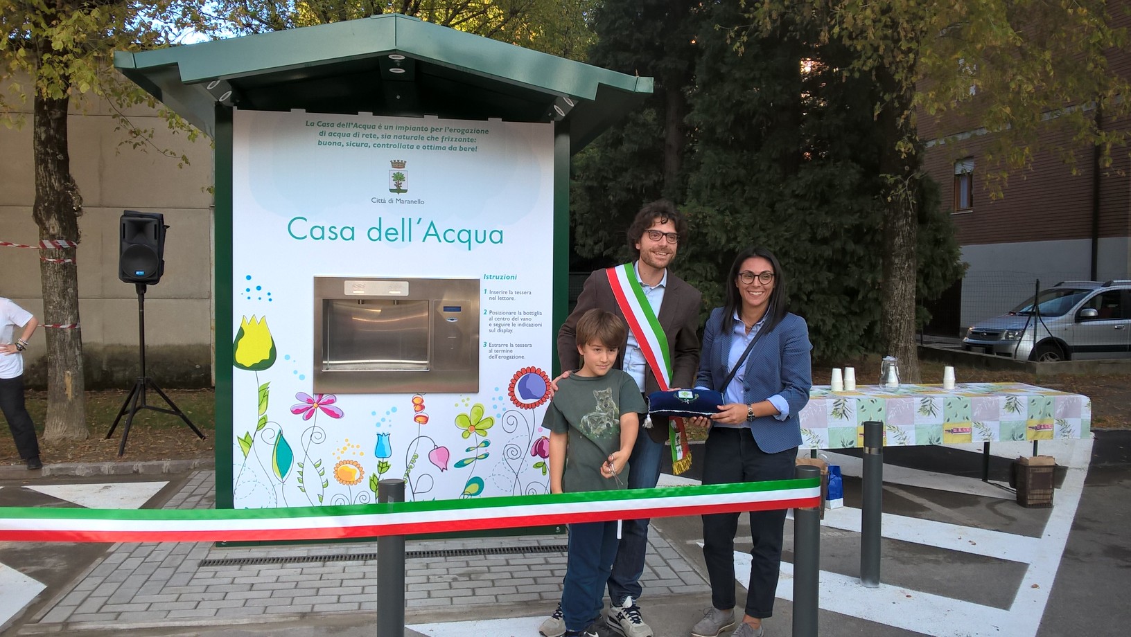 La Casa del Agua de Maranello se inauguró el domingo 7 de octubre de 2018. En la Piazza, el alcalde Morini y numerosos ciudadanos intrigados por la novedad asistieron al acto.